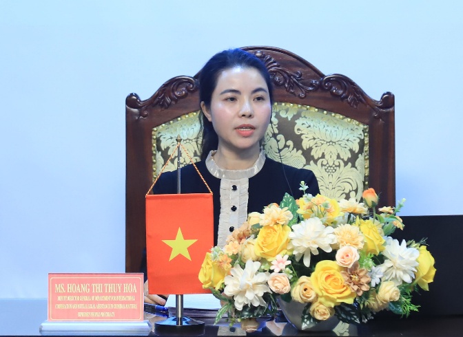 Đồng chí tin tưởng rằng quan hệ hợp tác giữa VKSND tối cao Việt Nam và Lào, đặc biệt trong lĩnh vực tương trợ tư pháp về hình sự sẽ tiếp tục phát triển hiệu quả trong thời gian tới. Nhân dịp này, thay mặt Đoàn đại biểu VKSND tối cao Việt Nam, đồng chí Hoàng Thị Thúy Hòa cảm ơn sự phối hợp chặt chẽ của Đoàn VKSND tối cao Lào, đại diện UNODC tại Việt Nam, Chương trình INL và Đại sứ quán Hoa Kỳ tại Việt Nam đã hỗ trợ hai Bên tăng cường hợp tác trong nâng cao năng lực thực thi pháp luật và thúc đẩy hợp tác quốc tế trong phòng, chống tội phạm xuyên quốc gia. Đồng chí cũng bày tỏ mong muốn các cuộc họp song phương giữa VKSND tối cao hai nước Việt Nam – Lào sẽ tiếp tục được duy trì nhằm tạo điều kiện cho hai Bên trao đổi, học hỏi kinh nghiệm và rà soát tiến độ xử lý các yêu cầu tương trợ tư pháp về hình sự.