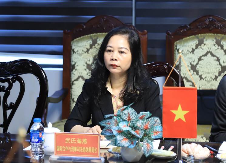Tại buổi làm việc, thành viên hai đoàn đã tích cực trao đổi, thảo luận về các vấn đề về tương trợ tư pháp về hình sự giữa Việt Nam và Trung Quốc; công tác triển khai, tổ chức các hoạt động hợp tác giữa hai bên: Chương trình hội nghị, tập huấn, giao lưu thể thao, văn hóa…