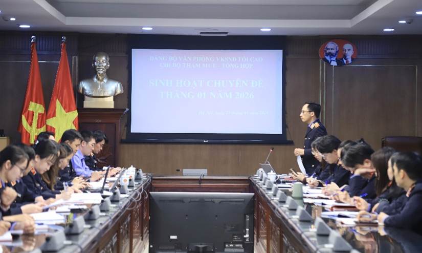 Ngày 27/01/2026, Chi bộ Tham mưu - Tổng hợp (Đảng bộ Văn phòng VKSND tối cao) đã tổ chức buổi sinh hoạt Chuyên đề đặc biệt “Chào mừng thành công của Đại hội Đại biểu toàn quốc lần thứ XIV của Đảng và Kỷ niệm 96 năm ngày thành lập đảng Cộng sản Việt Nam” và “Một số giải pháp nâng cao chất lượng công tác thi đua, khen thưởng gắn với nhiệm vụ chính trị của ngành Kiểm sát nhân dân”; bảo đảm công tác tham mưu tổng hợp trong triển khai thực hiện có hiệu quả, tạo sự chuyển biến tích cực, toàn diện các mặt công tác kiểm sát.