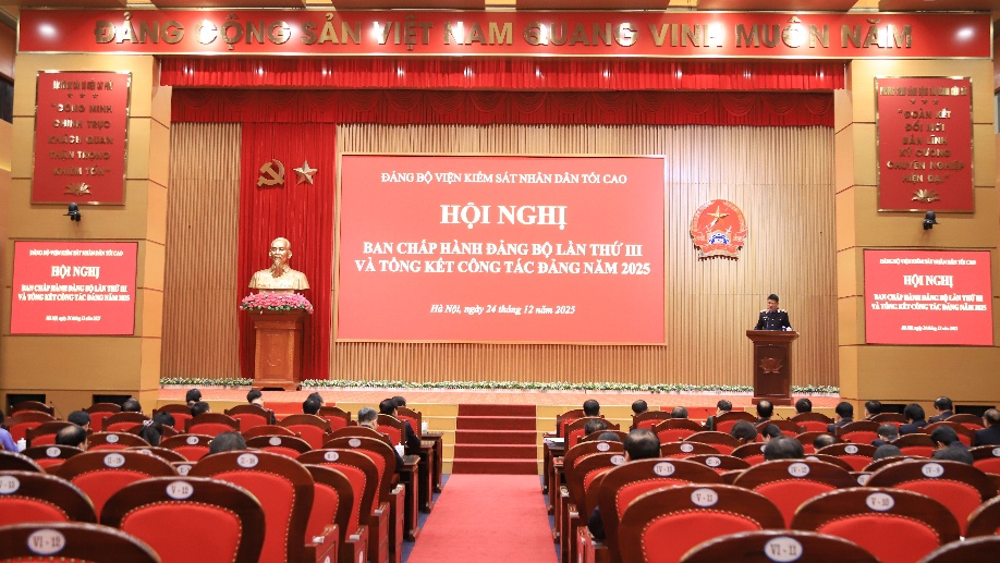 Ngày 24/12/2025, VKSND tối cao tổ chức Hội nghị Ban Chấp hành Đảng bộ lần thứ III và tổng kết công tác Đảng của Đảng bộ VKSND tối cao năm 2025. Đồng chí Nguyễn Huy Tiến, Ủy viên Ban Thường vụ Đảng ủy các cơ quan Đảng Trung ương, Bí thư Đảng ủy, Viện trưởng VKSND tối cao dự và chủ trì Hội nghị.