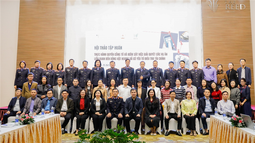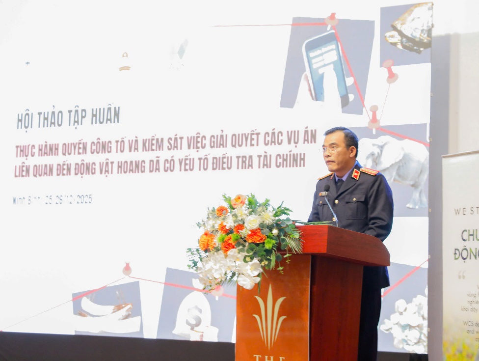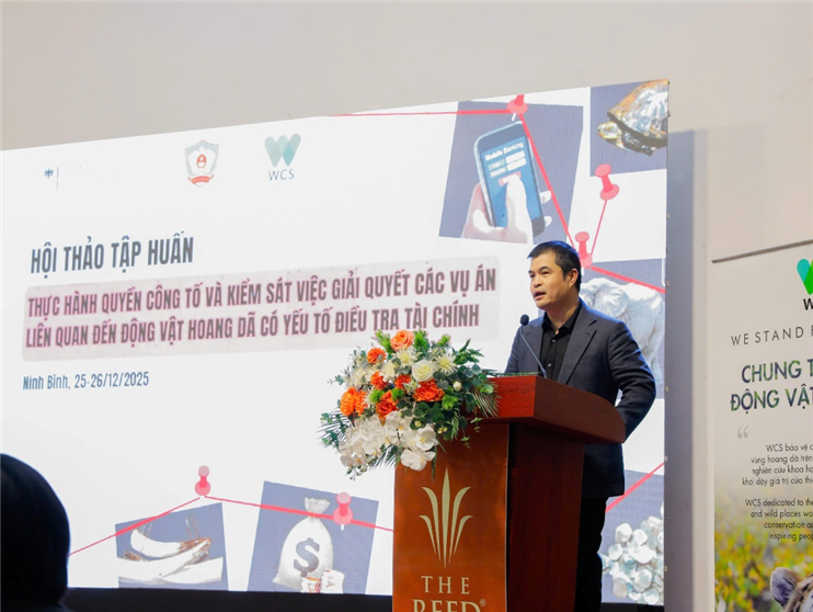 Thực hiện chương trình hợp tác quốc tế năm 2025 giữa VKSND tối cao và Chương trình Bảo tồn động vật hoang dã Việt Nam (WCS tại Việt Nam), nằm trong khuôn khổ hoạt động đã được Lãnh đạo Viện phê duyệt, từ ngày 25 đến ngày 26/12/2025, Trường Đại học Kiểm sát phối hợp với Vụ Hợp tác quốc tế và Tương trợ tư pháp về hình sự, VKSND tối cao; VKSND tỉnh Ninh Bình; Chương trình WCS tại Việt Nam tổ chức khóa Tập huấn “Thực hành quyền công tố và kiểm sát việc giải quyết các vụ án liên quan đến động vật hoang dã có yếu tố điều tra tài chính”. Chiều ngày 25/12/2025, Lễ khai mạc khoá Tập huấn đã được tổ chức tại Khách sạn The Reed, tỉnh Ninh Bình với sự chủ trì của TS. Nguyễn Thị Lộc – Phó Hiệu trưởng Trường Đại học Kiểm sát và Ông Phạm Thành Trung - Quản lý Chương trình WCS tại Việt Nam.