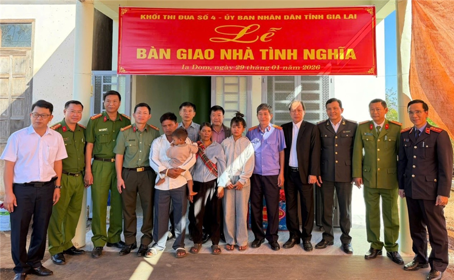 Cùng với hoạt động thăm, chúc Tết các địa phương, sáng ngày 29/01/2026, VKSND tỉnh Gia Lai phối hợp với chính quyền địa phương tổ chức Lễ bàn giao Nhà tình nghĩa cho gia đình ông Ksor Bin tại làng Bi, xã Ia Dom, tỉnh Gia Lai, qua đó giúp gia đình đón một mùa xuân mới ấm áp, an vui.
