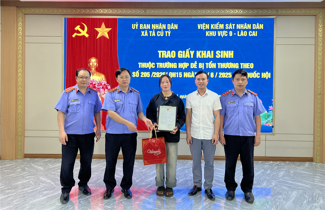 Trên cơ sở đó, ngày 27/3/2025, VKSND khu vực 9 đã ban hành kiến nghị đối với UBND xã Tả Củ Tỷ, đề nghị khẩn trương hướng dẫn, hỗ trợ gia đình hoàn thiện hồ sơ và thực hiện đăng ký khai sinh theo đúng trình tự, thủ tục pháp luật quy định.