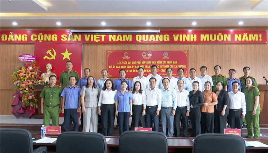 VKSND khu vực 12, thành phố Cần Thơ: Ngày 08/01/2026, VKSND khu vực 12 phối hợp với Ủy ban nhân dân, Ủy ban Mặt trận Tổ quốc Việt Nam và Tòa án nhân dân khu vực 12 tổ chức Lễ ký kết các Quy chế phối hợp, góp phần bảo đảm pháp luật được chấp hành nghiêm chỉnh, thống nhất trên địa bàn.