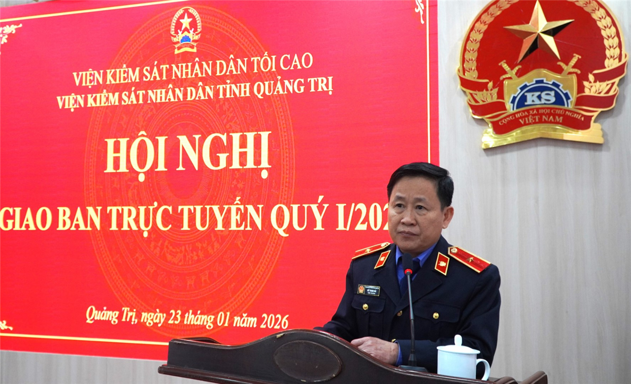 VKSND tỉnh Quảng Trị: Ngày 23/01/2026, VKSND tỉnh Quảng Trị tổ chức Hội nghị giao ban công tác Kiểm sát Quý I năm 2026.
