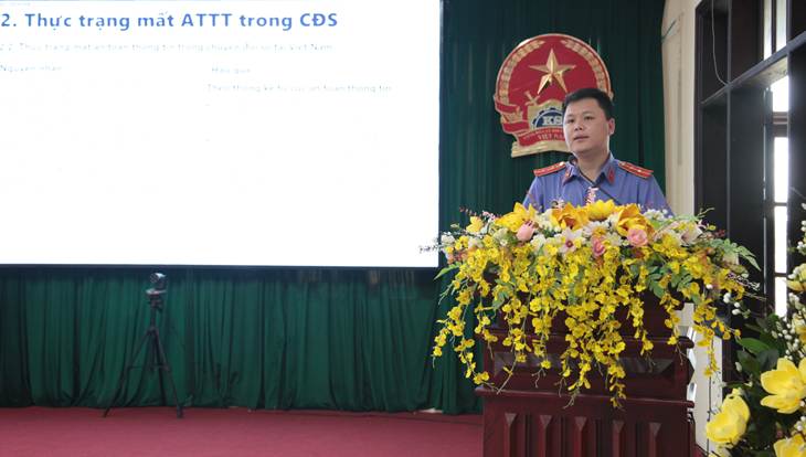 Trong buổi chiều, lớp tập huấn đã được nghe đồng chí Nguyễn Quang, Chuyên viên Cục 2 giảng dạy, phân tích các nguy cơ mất an toàn thông tin trong chuyển đổi số, từ các vụ tấn công APT, phishing, giả mạo cơ quan nhà nước đến tình trạng lộ lọt dữ liệu cá nhân. Các giải pháp được đưa ra nhấn mạnh ba yếu tố: Con người – chính sách – công nghệ, trong đó đặc biệt chú trọng việc nâng cao nhận thức cho cán bộ, Kiểm sát viên và tăng cường các biện pháp kỹ thuật bảo mật đa tầng.